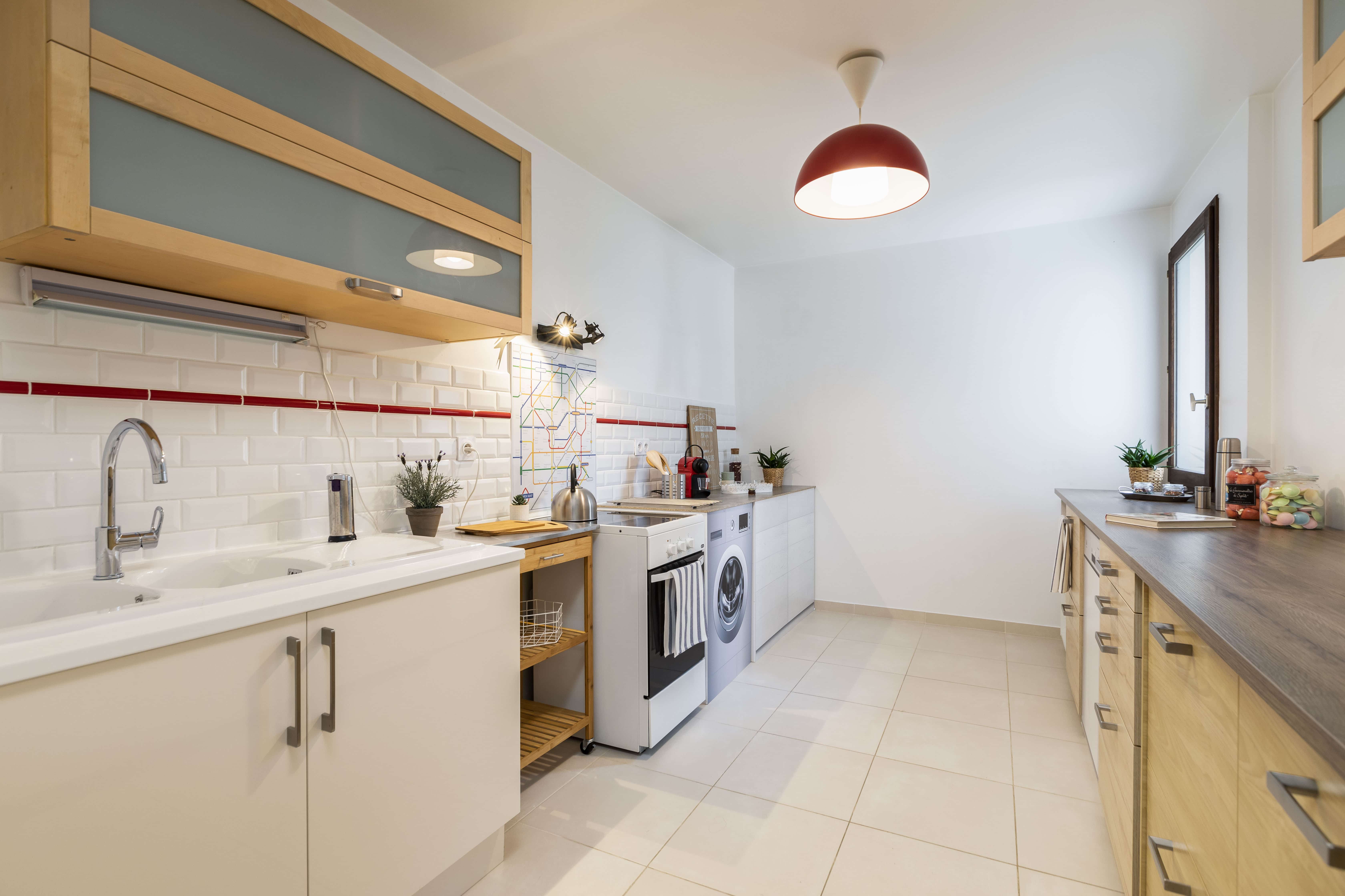 Côté cuisine, l’objectif était également de valoriser les volumes pour permettre aux visiteurs de se projeter. Les cuisines factices Home-Staging Experts ont fait une nouvelle fois leurs preuves pour aménager efficacement la pièce en un clin d’oeil !